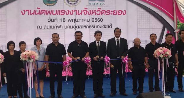 ในวันนี้ที่สนามกีฬานิคมอุตสาหกรรมอมตะซิตี้ อ.ปลวกแดง จ.ระยอง โดยนิคมอุตสาหกรรมอมตะซิตี้ ร่วมกับ สำนักงานจัดหารงาน จังหวัดระยอง จัดวัน “นัดพบแรงงานจังหวัดระยอง” รวมตำแหน่งงานว่างกว่า 3,000 อัตรา โดยมีกลุ่มโรงงาน กว่า 100 บริษัท เข้าร่วม และเปิดรับสมัครแรงงาน ป้อนภาคอุตสาหกรรมการผลิต โดยมีนาย สุรศักดิ์ เจริญศิริโชติ ผู้ว่าราชการ จังหวัดระยอง มาเป็นประธานเปิดงาน